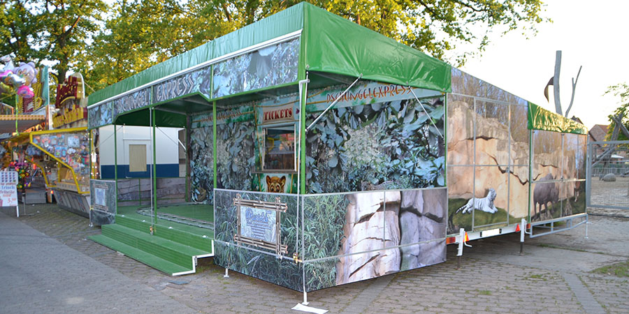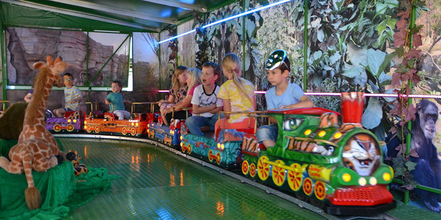 Dieses Abenteuer für Kinder, können Sie bei uns mieten. Unser Dschungel Express bietet bis zu 12 Kindern pro Fahrt eine Menge Spaß. Selbstverständlich kommen „Balu und Co“ mit Musik und Moderation zu Ihnen. Die Bahn wird von uns geliefert, aufgebaut und betrieben. Nach kurzer Einweisung ist es auch möglich, dass Sie die Eisenbahn selbst bedienen.