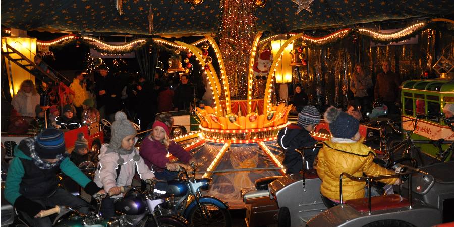 Dieses sehr schöne Nostalgiekarussell mit vielen verschiedenen Fahrzeugen macht es möglich, ob auf dem Trecker, in der Straßenbahn oder einem der anderen Fahrmöglichkeiten. Durch unsere Wechselfront, können wir dieses Karussell zur Weihnachtszeit besonders schön gestalten und machen es so zu einem tollen Blickfang. Mit Musik, Beleuchtung und guter Moderation werden die Kleinen dieses Kinderkarussell nicht so schnell vergessen.