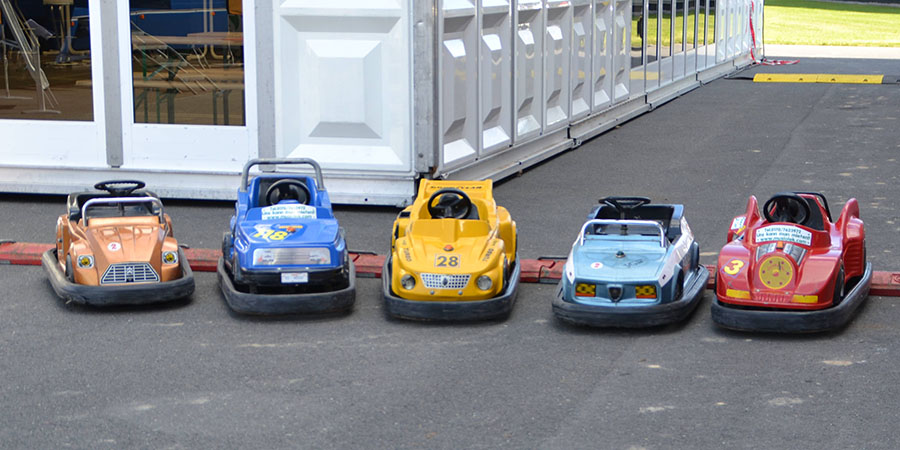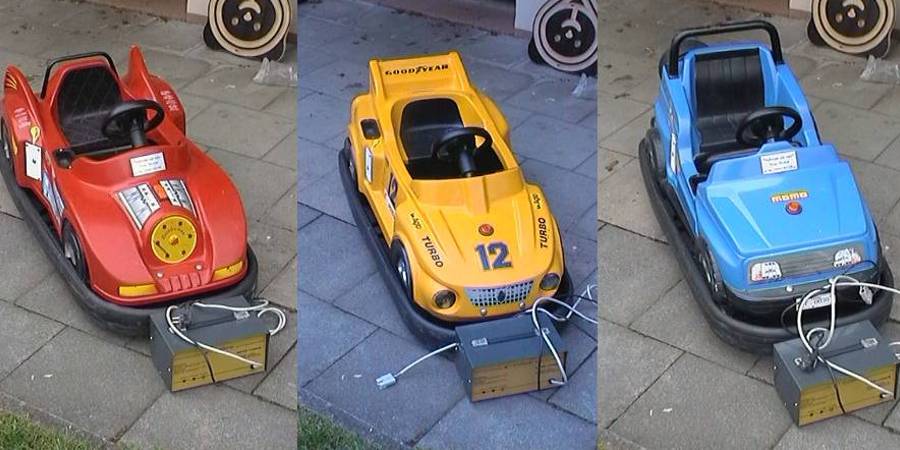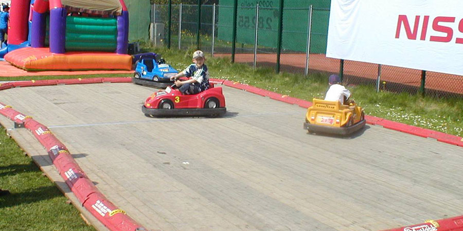 Bis zu 5 Autos bieten den Kindern eine Menge Spaß mit tollem Motorensound. Die Autos fahren auf fast allen festen Untergründen. Auf Wunsch wird eine Holzfahrbahn mit vermietet, somit sind dem Aufstellungsort keine Grenzen gesetzt. Die Fahrten können wahlweise per Knopfdruck oder mit Münzeinwurf gestartet werden. Auch die Fahrzeit, Geschwindigkeit und den Motorensound kann man nach eigenen Wünschen einstellen.