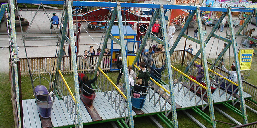 Auch in der modernen Welt, ist diese Attraktion ein echtes Erlebnis. Normales Schaukeln für die Kinder oder Überschlagaction für Erwachsene, dieses Fahrgeschäft hat eine Menge Spaß zu bieten. TV-Produktionen wie „Schlag den Raab“ oder „Klein gegen Groß“ (Kai Pflaume) machten unsere Schaukel bekannt.