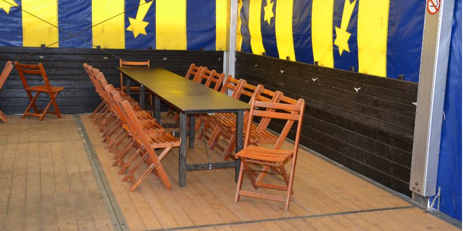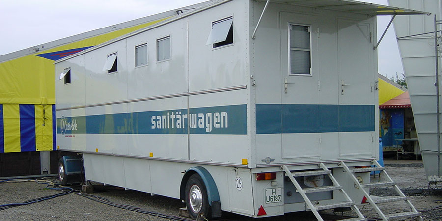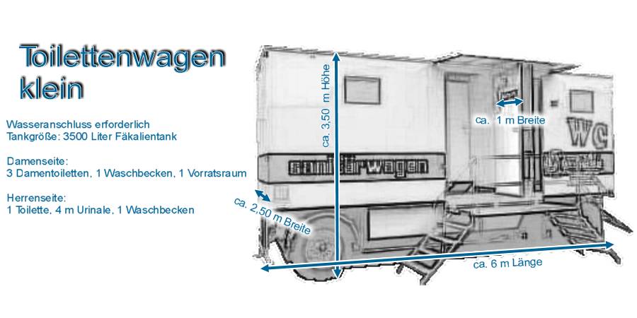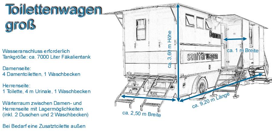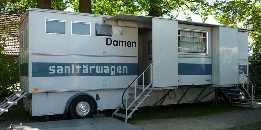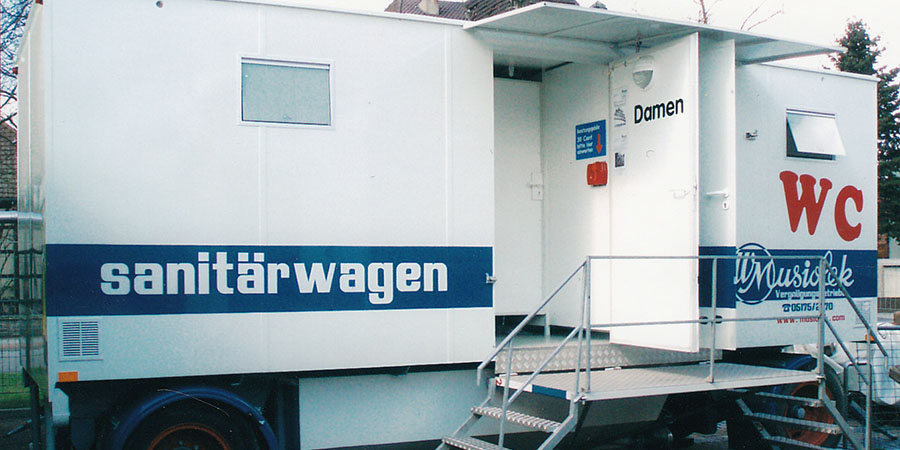 Gerne stellen wir Ihnen auch Bestuhlung, Tische, Beleuchtung, Bühne und gastronomisches Zubehör zur Verfügung. Daneben haben wir in unserem Fuhrpark zwei unterschiedliche Toilettenwagen mit eigenen Tanks, sodass während der Veranstaltung grundsätzlich kein Abfluss benötigt wird.