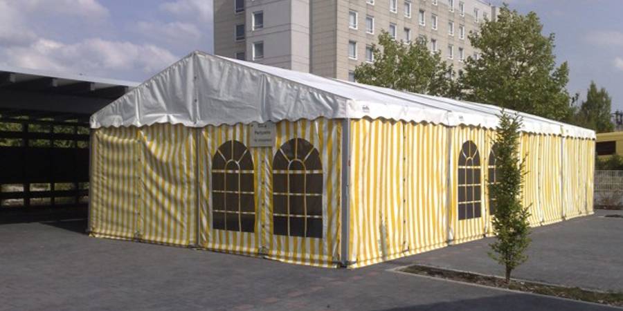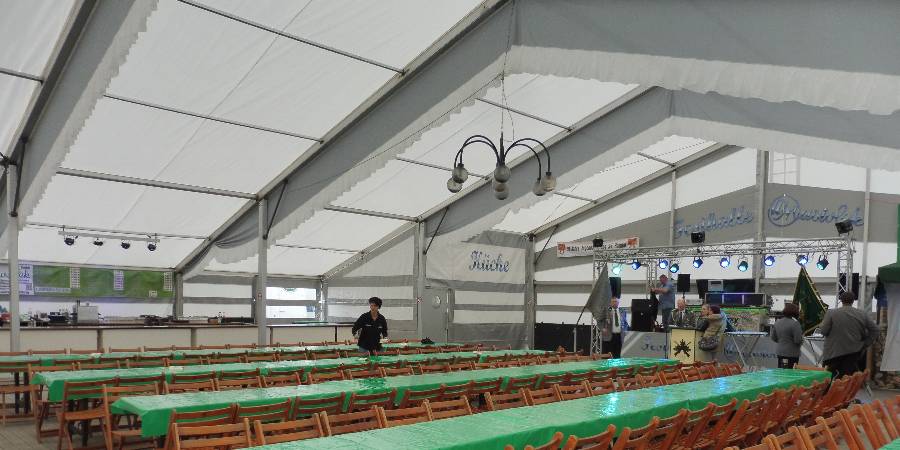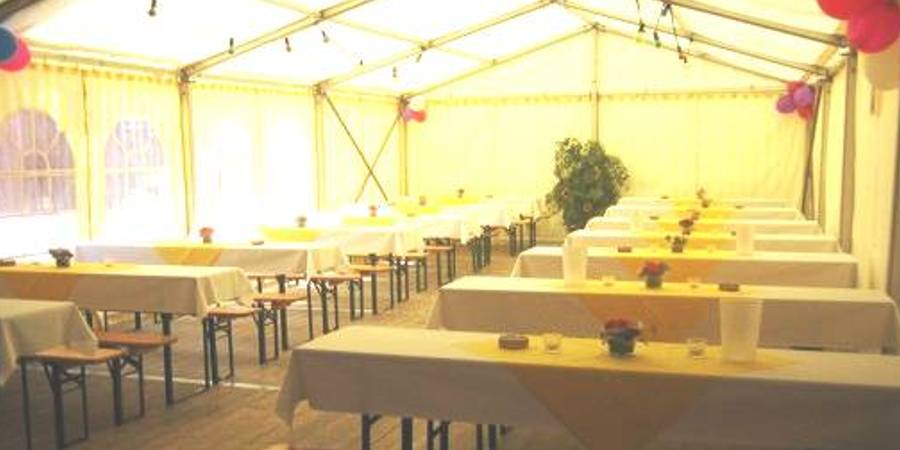 Für das richtige Ambiente bei Ihnen vor Ort bieten wir Ihnen unsere Festzelte in variablen Größen. Diese sind beheizbar und können daher im ganzen Jahr verwendet werden.